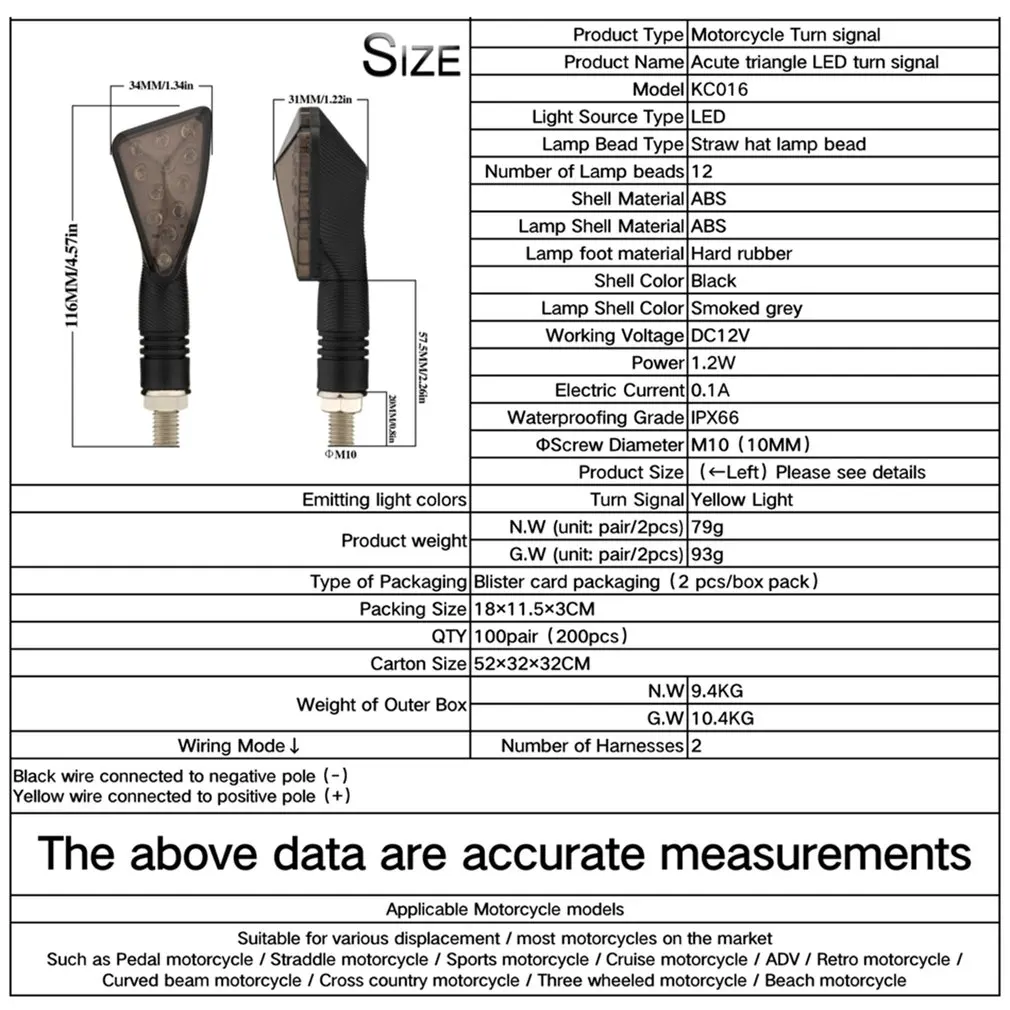 2. Светильник сигнала поворота: это светильник сигнала поворота, который подходит для большинства мотоциклов DC12V с 10 мм винтовыми отверстиями.