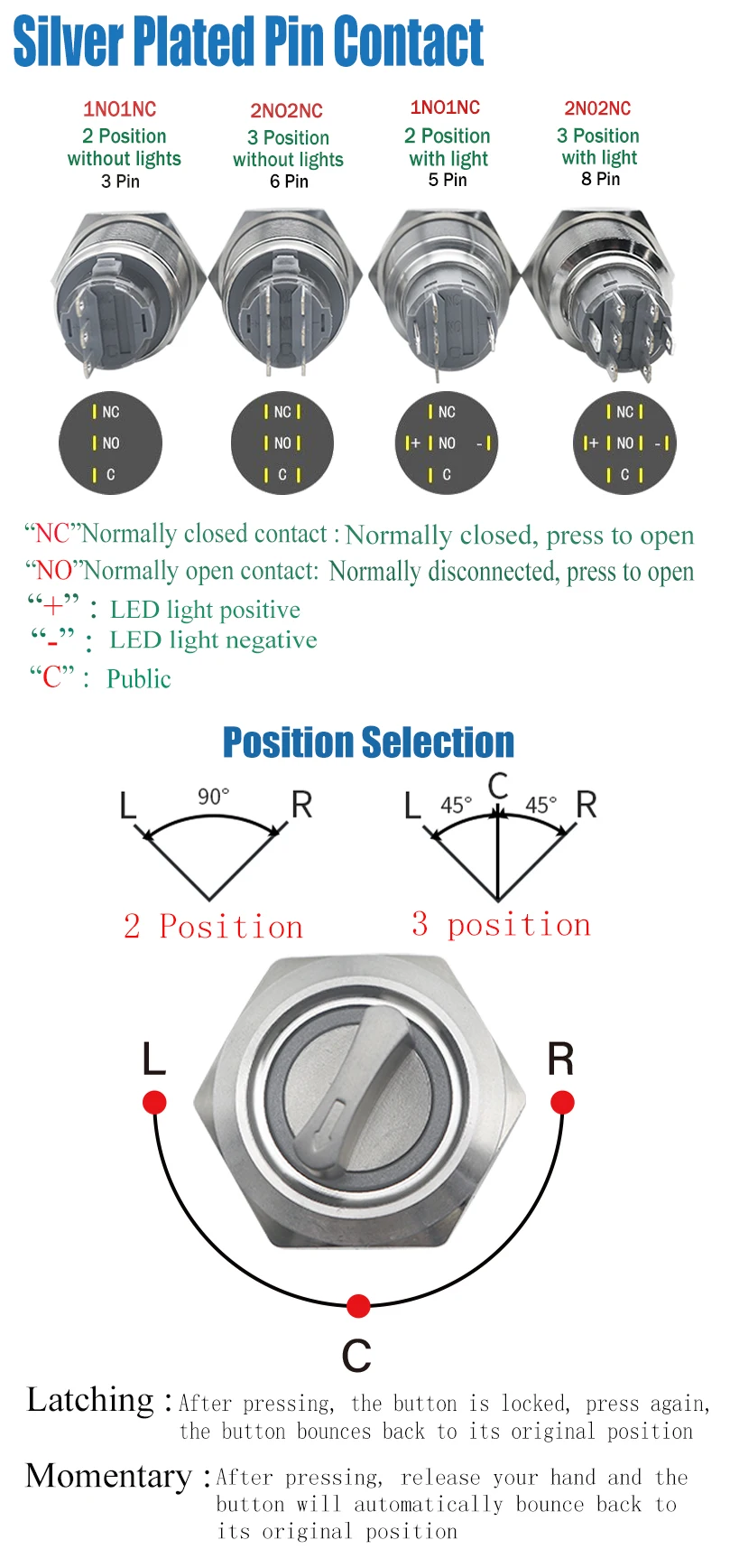 Тип: 2 Позиции 1NO1NC / 3 позиции 2NO2NC