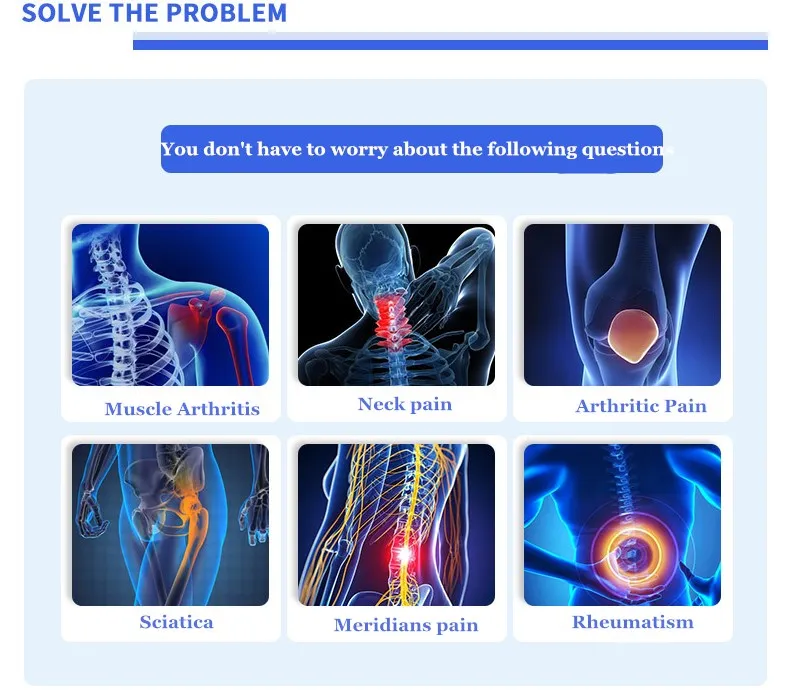Область применения: применяется для лечения боли, вызванной замороженным плечом, шейным спондилом, ревматоидным артритом, гиперплазией костей, грыжей поясничного диска, синяков, боли в талии и ногах