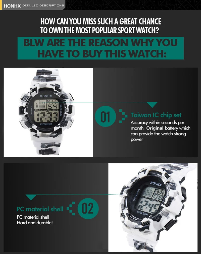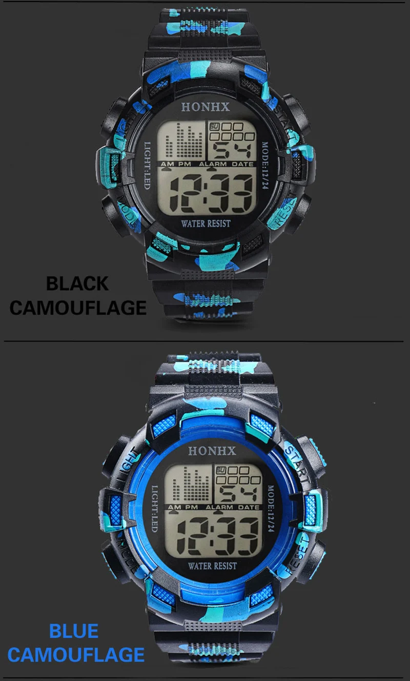 Темно-синий камуфляж мужские часы спортивные Высокое качество силиконовый ремешок армейские наручные часы водонепроницаемые светящиеся светодиодные цифровые часы Hombre