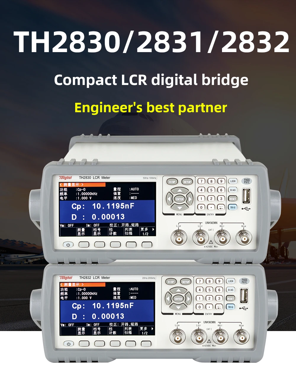 4,3 дюймов TFT ЖК-дисплей Дисплей и новый бренд интерфейс системы, TH283X метрами LCR серии обладают элегантным внешним видом и легкая работа. Кроме того, благодаря различным интерфейсам и хорошей совместимости с командами SCPI, счетчики LCR серии TH283X удобны для создания всех видов тестовой системы и удовлетворения различных видов требований к проверке, производству и научным исследованиям.