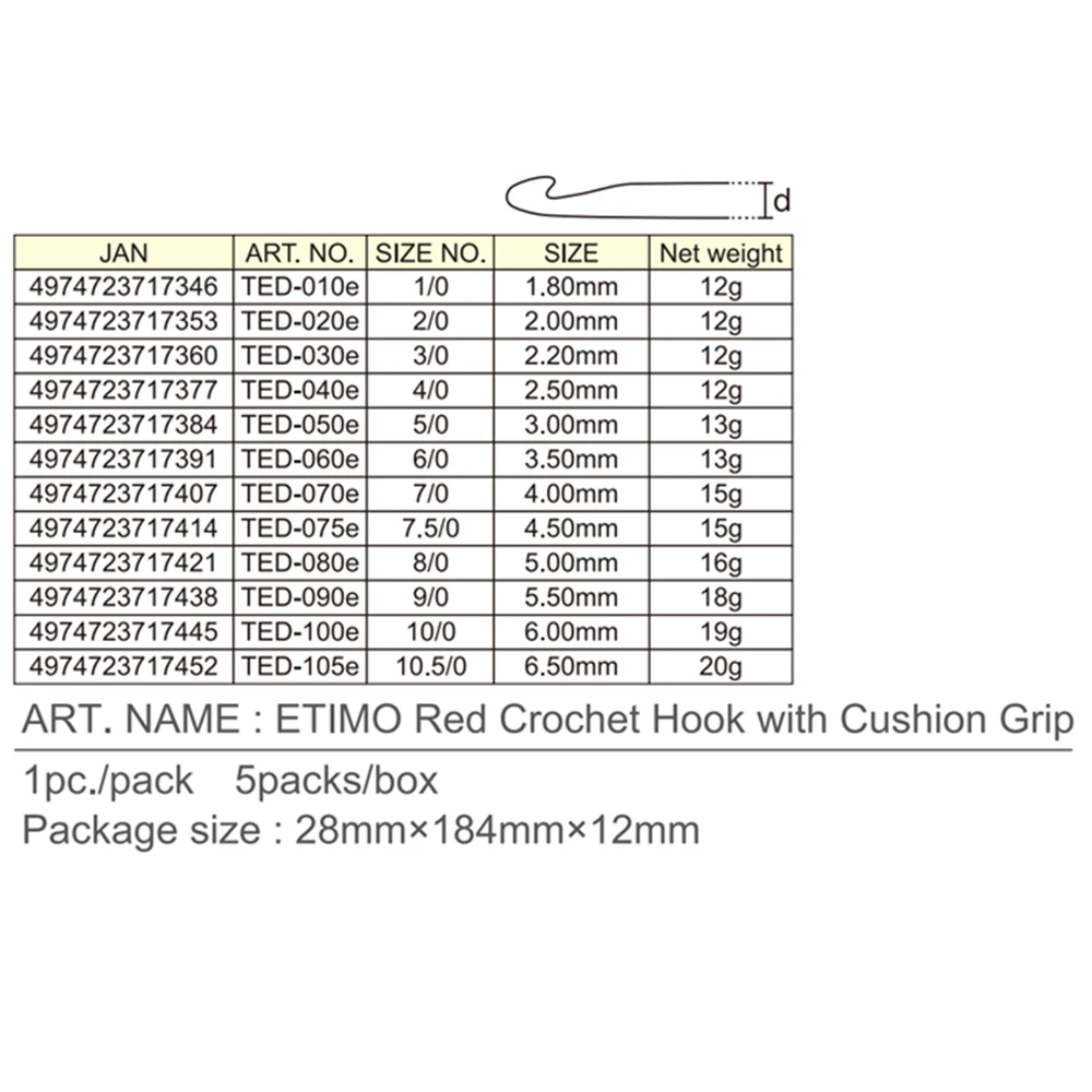 Набор для вязания крючком Tulip TED-001 ETIMO Red с рукояткой 1,8 мм, 2,0 мм, 2,2 мм, 2,5 мм, 3,0 мм, 3,5 мм, 4,0 ММ, 5,0 мм, 5,5 мм