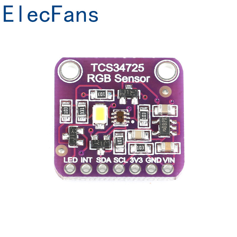 Чип цветного датчика TCS34725 обеспечивает красный, зеленый, синий (RGB) и яркий светильник с цифровым датчиком возврата;