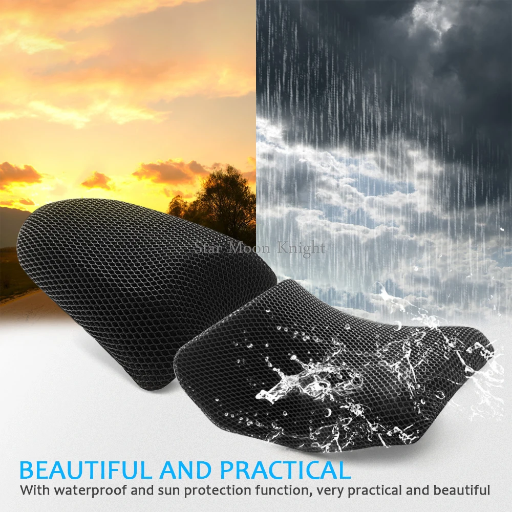 Этот чехол для сиденья-это кондиционер для вашего оригинального сиденья мотоцикла. Воздух может циркулировать во время вождения, потому что крышка трехмерная. Даже при большом весе, он не может быть полностью сжатым: это не только обеспечивает воздухопроницаемость, но и сохраняет ваши ягодицы сухими, когда идет дождь. Крутой чехол не нагревается даже при прямых солнечных лучах. Еще один плюс: это создает массажный эффект и тем самым уменьшает признаки усталости.