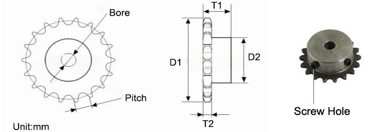 Звездочка привода-это шестерня с металлическими зубьями, которая работает в соединении с цепью, цепь помещается между двумя звездочками, одна из которых является ведущей звездочкой, другая обычно прикрепляется к двигателю, который передает питание на звездочку.·Звездочка измеряется центром шаг зуба к центру зуба.