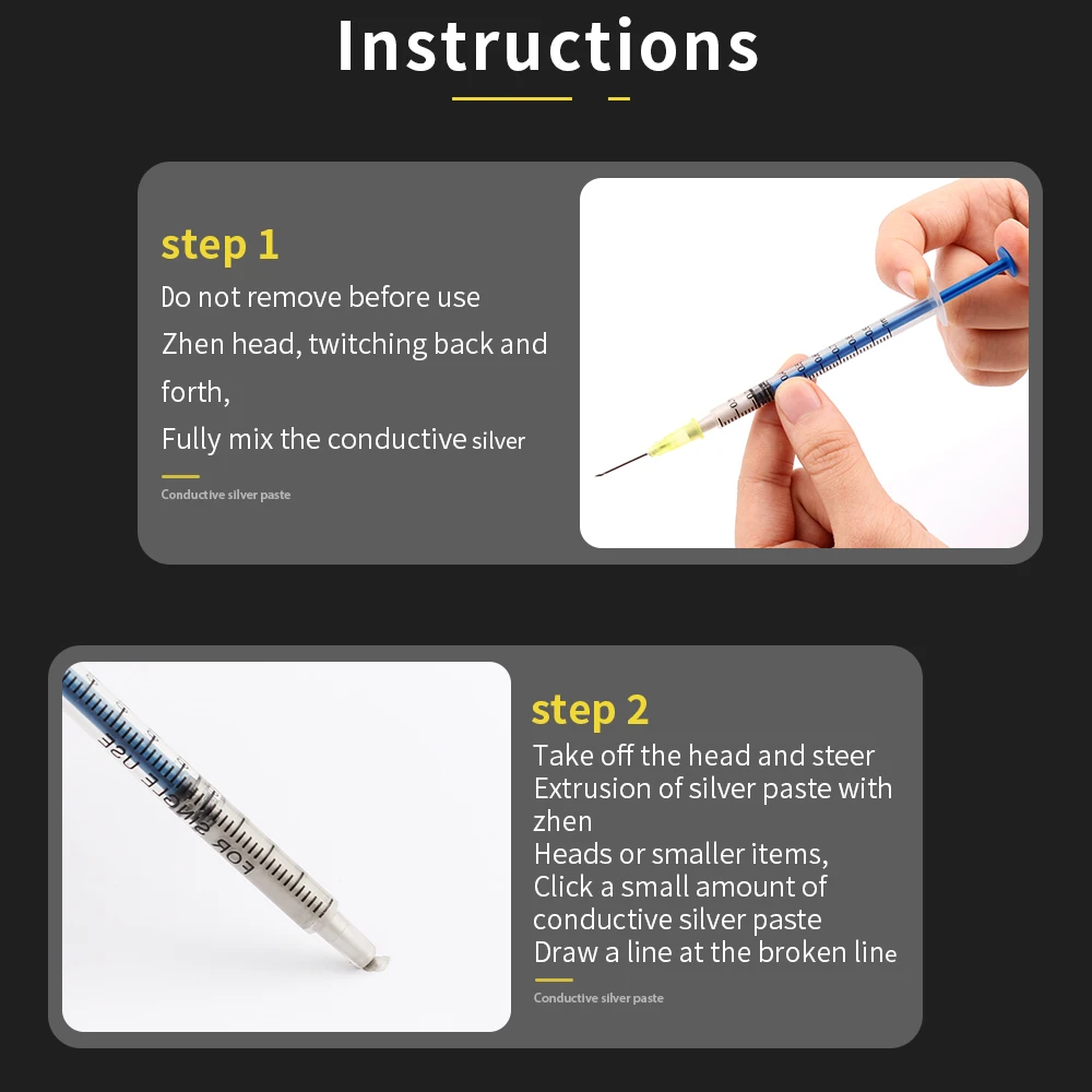 1. Не удаляйте перед использованием головы Чжэнь, дергаясь вперед и назад, полностью Смешайте проводящую серебряную пасту.