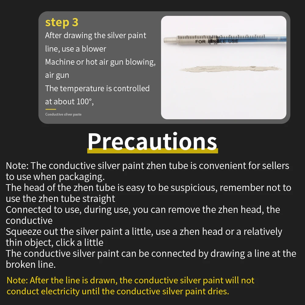 Подключено к использованию, во время использования, вы можете удалить игольчатую головку, проводящий выдавливать серебряную краску немного, использовать zhen головку или относительно тонкий предмет, кликните немного, Проводящая серебряная краска может быть соединена путем рисования линии на сломанной линии.
