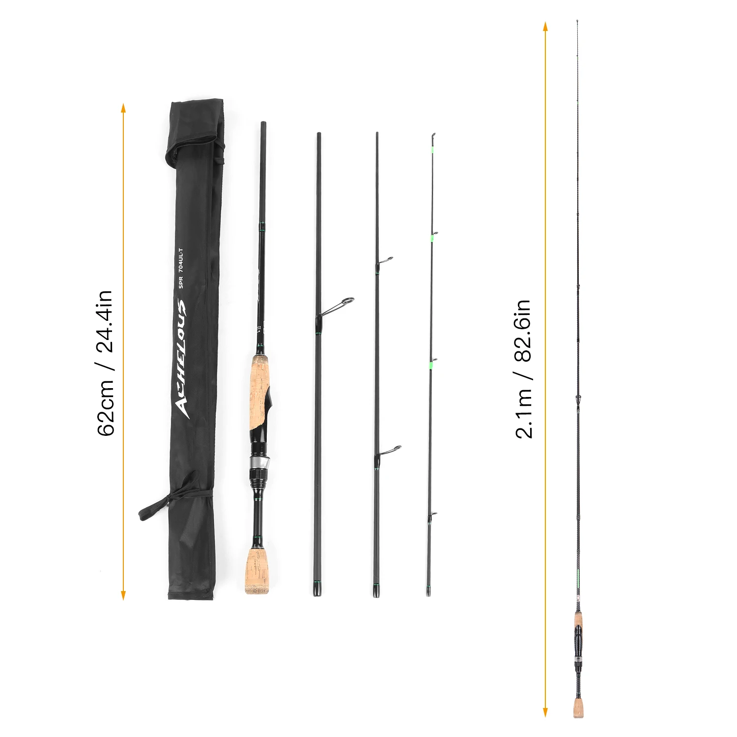 Поездок спиннинговая удочка, характеристики по портативный 4-секционный дизайн, гладкая керамические направляющие кольца, стабильный катушкодержатель и застежка-молния Стопорной Гайкой, отлично подходит для наслаждения и удобство для отсеками предназначен для хранения рыболовных!