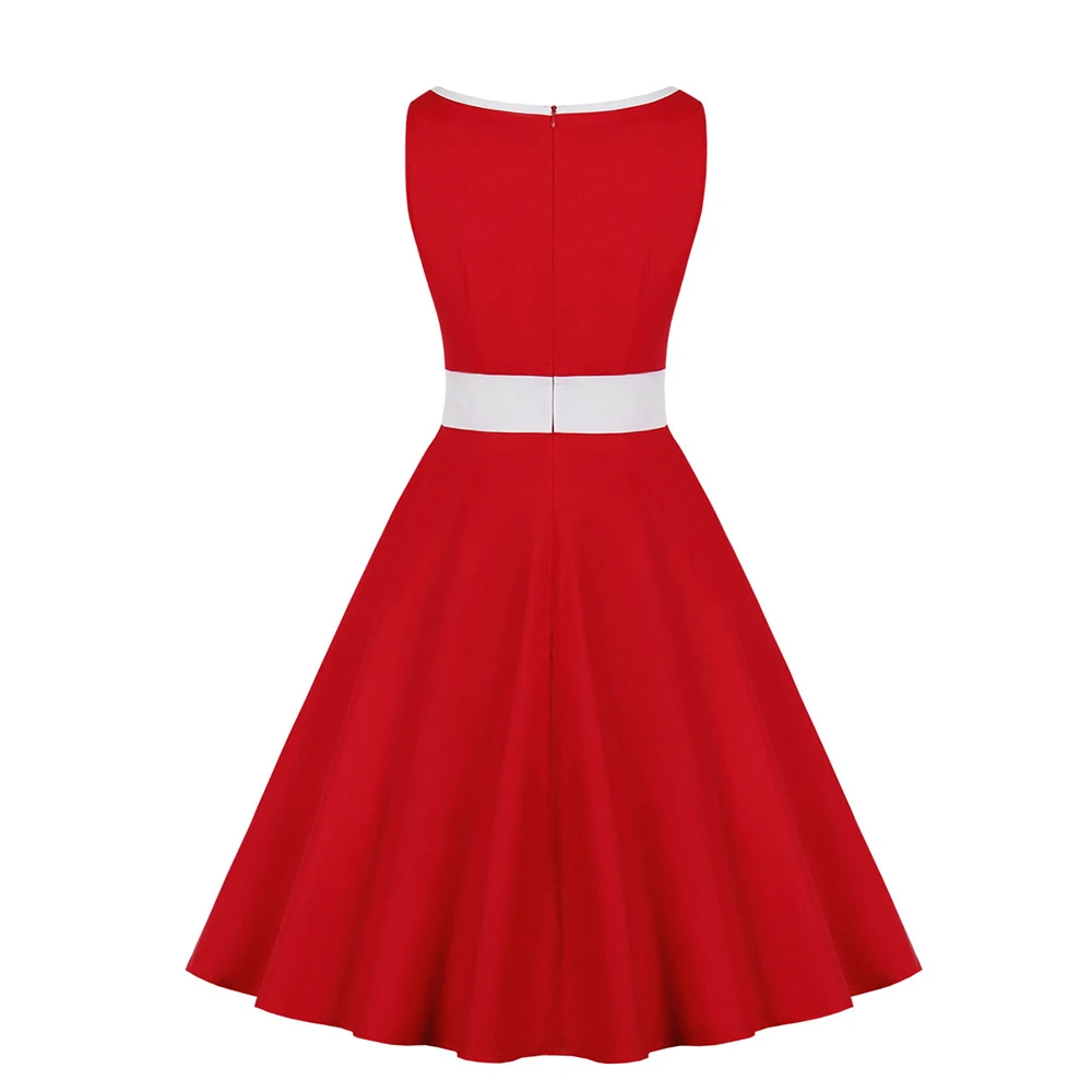 50s Хепберн Стильное элегантное винтажное платье с пуговицами VD2054 летнее хлопковое красное женское платье без рукавов