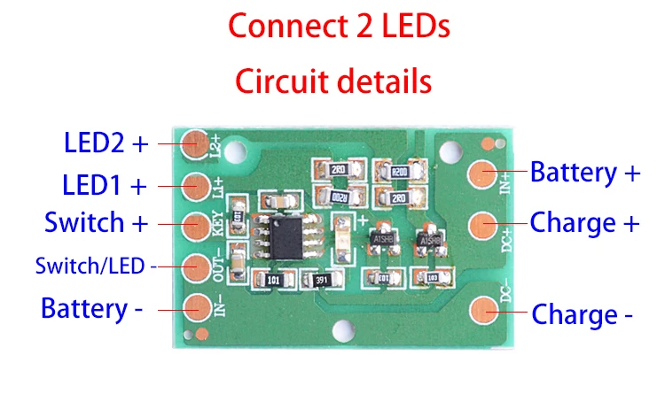 5 режимов: Подключение 1 светодиодный 100% - 50% - 25% - 8 Гц-SOS--OFF