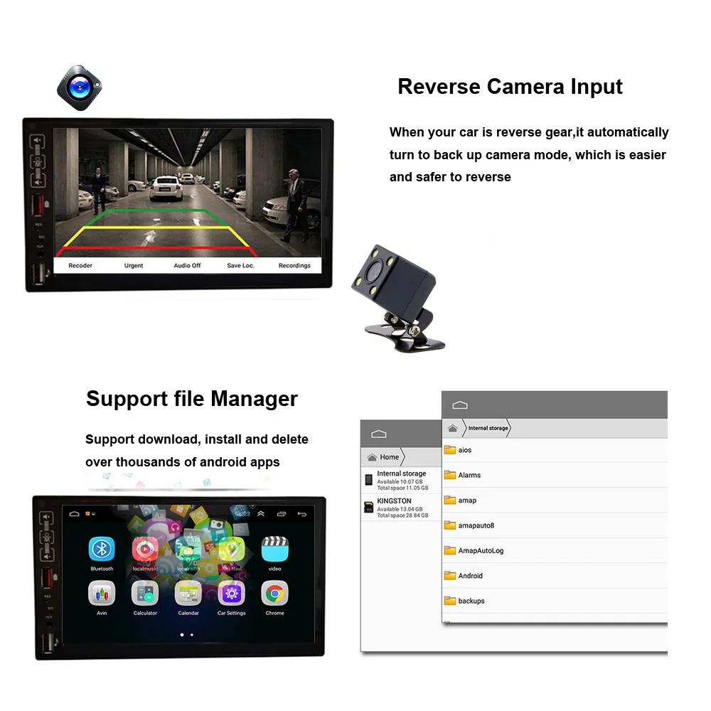 Примечание: Пожалуйста, используйте наши кабели питания для подключения нашего автомобильного радио, невозможно вставить оригинальную автомобильную вилку непосредственно в нашу машину. В: почему автомобильное радио покажет «нет сигнала», когда мы задним ходом? О: Пожалуйста, проверьте, правильно ли подключена линия камеры к автомобильному радио.
