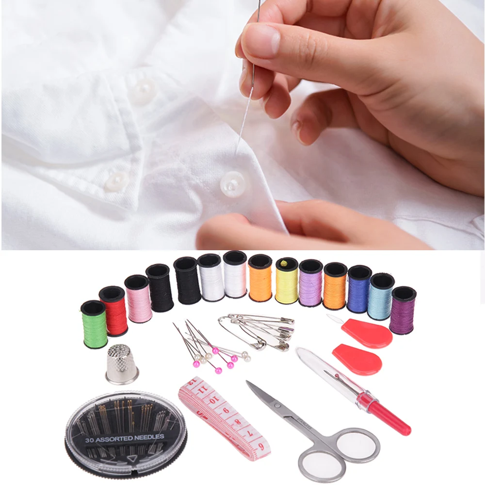 Идеальный набор для шитья-комплект содержит все необходимые инструменты, которые необходимы для выполнения основного ремонта-будь то иглы, нитки, ножницы, кнопки, наперсток, инструменты для нарезки, потрошитель швов и Все швейные инструменты, все аккуратно упаковано для вашего использования.