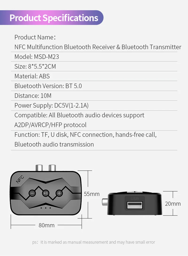 Название продукта: NFC Многофункциональный bluetooth-приемник и bluetooth-передатчик