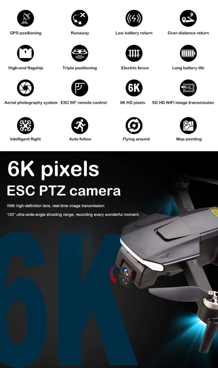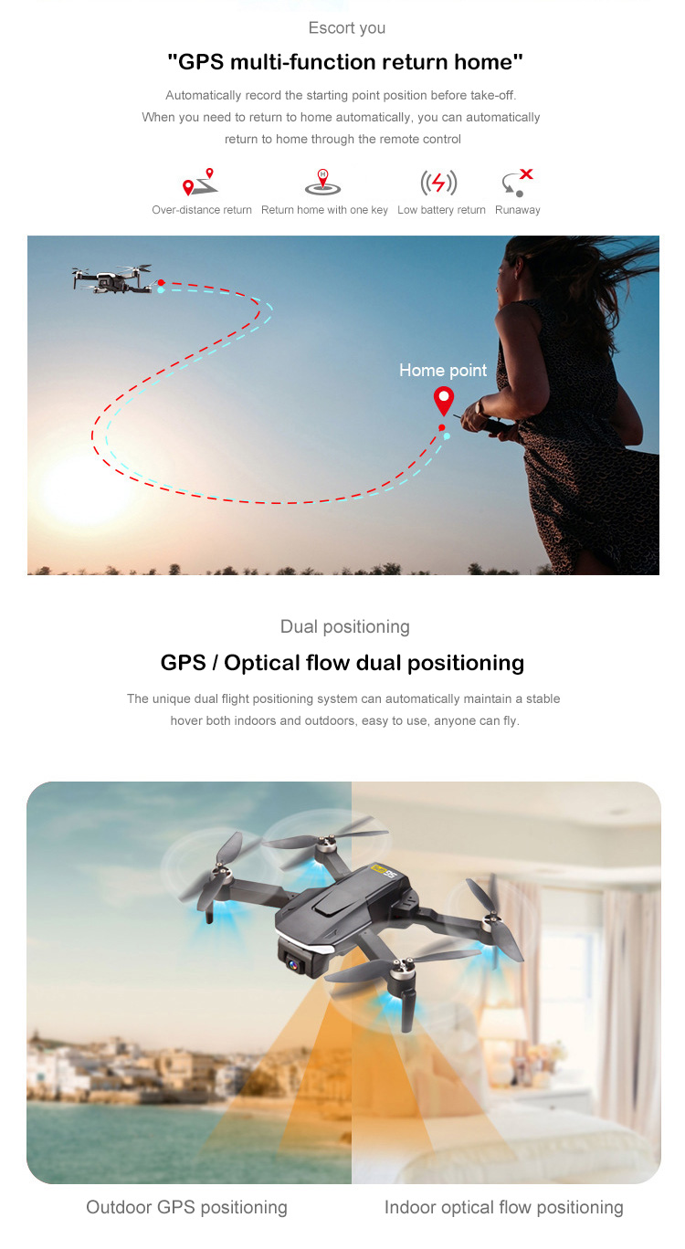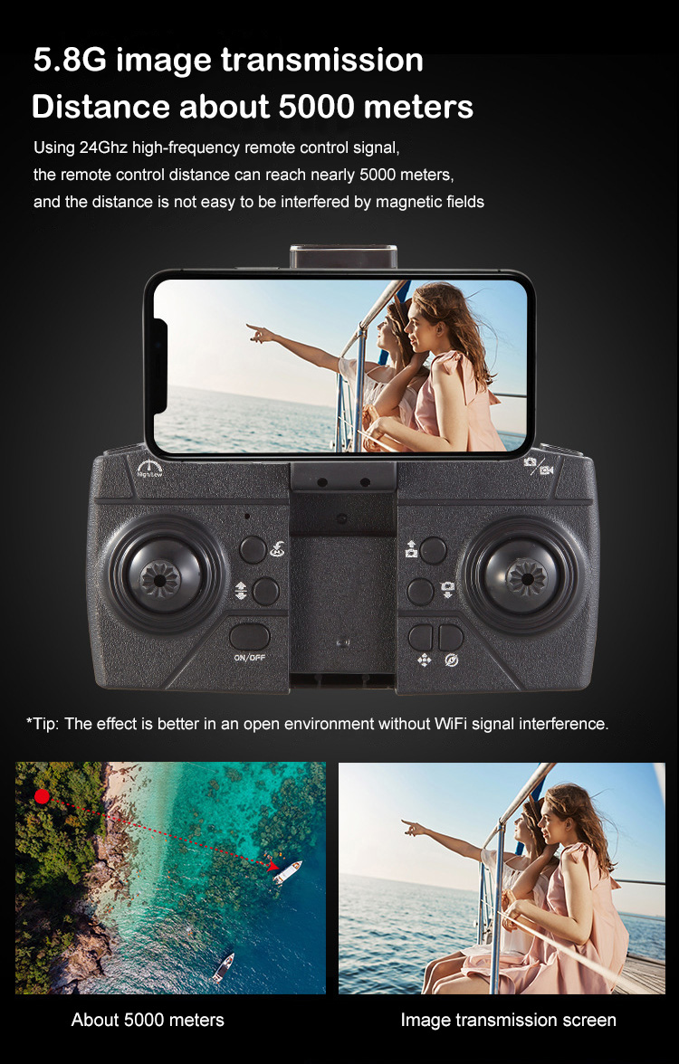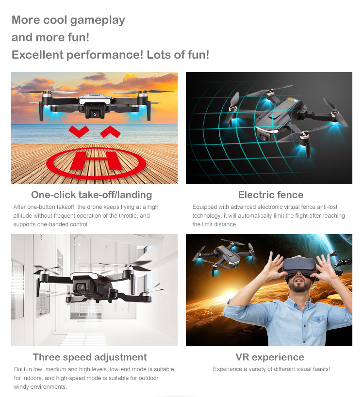 3. Дрон оснащен 4 высокоэффективными и энергосберегающими бесщеточными двигателями, высокой скоростью, сильной мощностью и энергосбережением и разумным размещением, так что Дрон может лететь до 7 уровней сопротивления ветра.