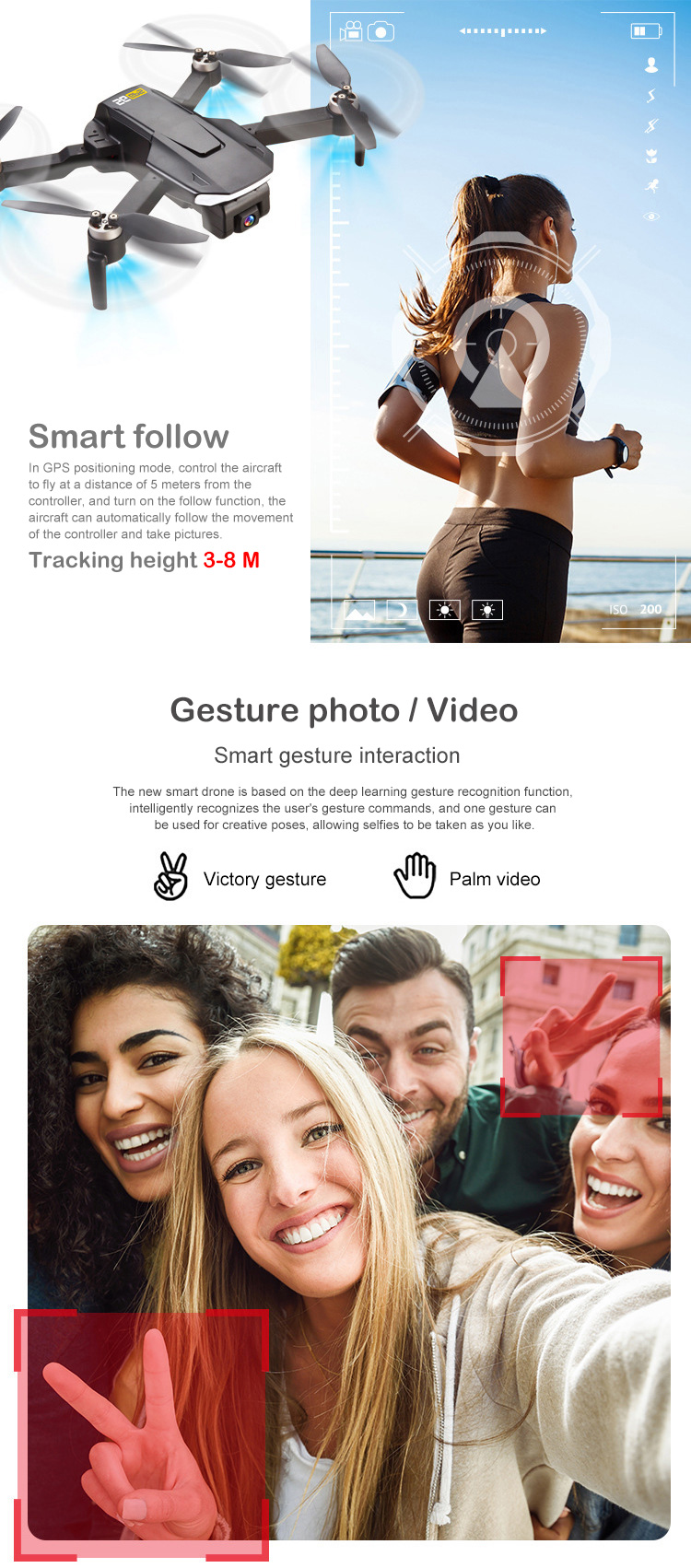 6. В режиме позиционирования GPS Управляйте летательным аппаратом на расстоянии 5 метров от контроллера и включите функцию следования, самолет может автоматически следить за движением контроллера и делать снимки.