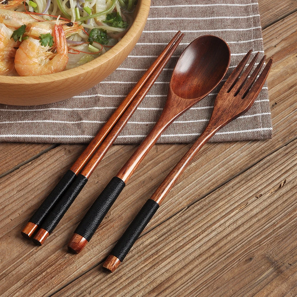 3 шт./компл. деревянные палочки для еды Ложка Вилка японские палочки для суши набор посуды для рисового супа кухонные бамбуковые палочки для еды посуда 25