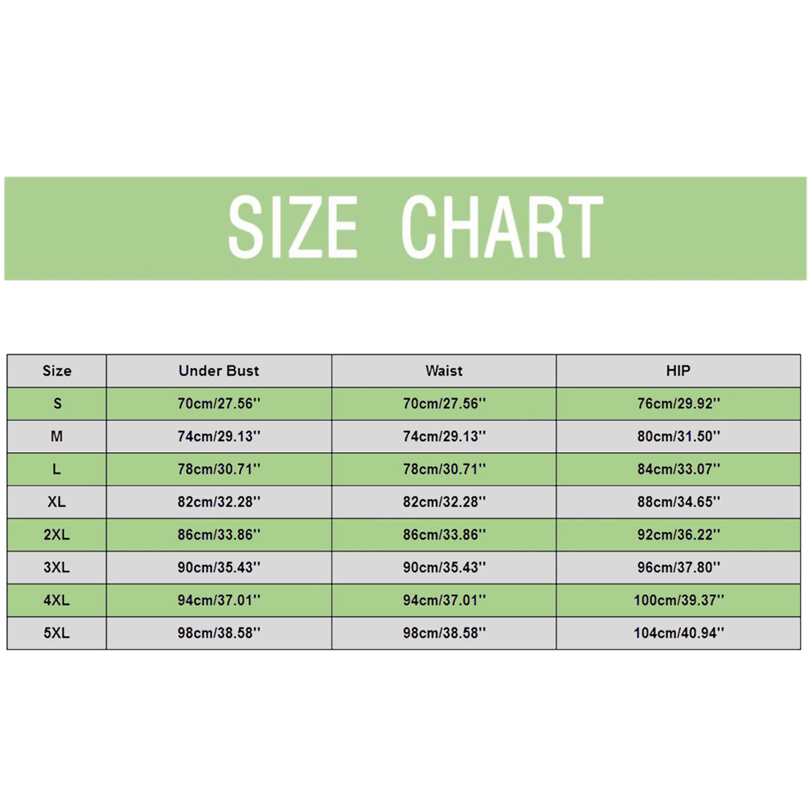 Размеры Под грудью Талия Бедра 3XL 90 см/35,43'' 90 см/35,43'' 96 см/37,80'' 4XL 94 см/37,01'' 94 см/37,01'' 100 см/39,37'' 5XL 98 см/38,58'' 98 см/38,58'' 104 см/40,94''