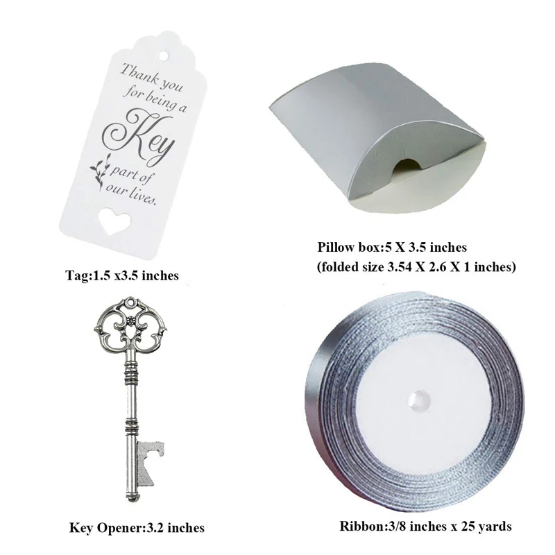 Все в одном наборе: креативная коробка для конфет, полезные открыватели для ключей, элегантная шелковая лента и подарочные бирки, Свадебный Сувенирный набор, красивое украшение для вашей винтажной/деревенской свадьбы.