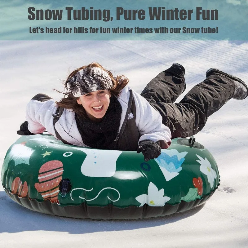 A-DUDU Снежная трубка имеет больший размер-47 дюймов, достаточно большой для детей и взрослых. Обтекаемый круг дизайн без каких-либо выступы для того, чтобы защитить безопасность детей. Это позволяет всем членам вашей семьи наслаждаться снежными трубками. Лучший рождественский подарок для семьи и друзей!