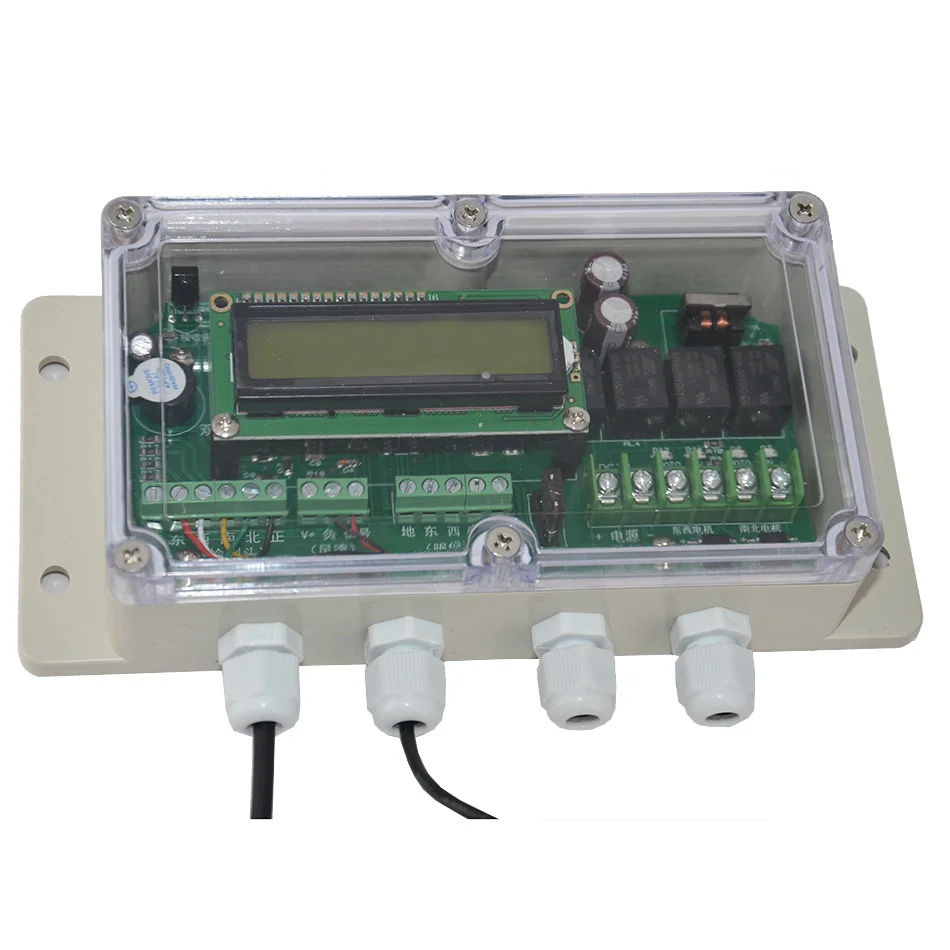 Контроллер-это одноосевой контроллер слежения от солнца, который использует специальную головку двойного обнаружения для обнаружения направления солнца. Сигнал головки обнаружения анализируется и оценивается микрокомпьютером с одним чипом на контроллере, И соответствующий двигатель на платформе контролируется комбинацией реле на печатной плате для отслеживания солнца. В то же время, он также имеет функции выравнивания в чехол ветра и дома ночью, соответствующие параметры отображаются на ЖК-дисплее на английском языке, И может быть установлен свободно с помощью кнопок инфракрасного пульта дистанционного управления.