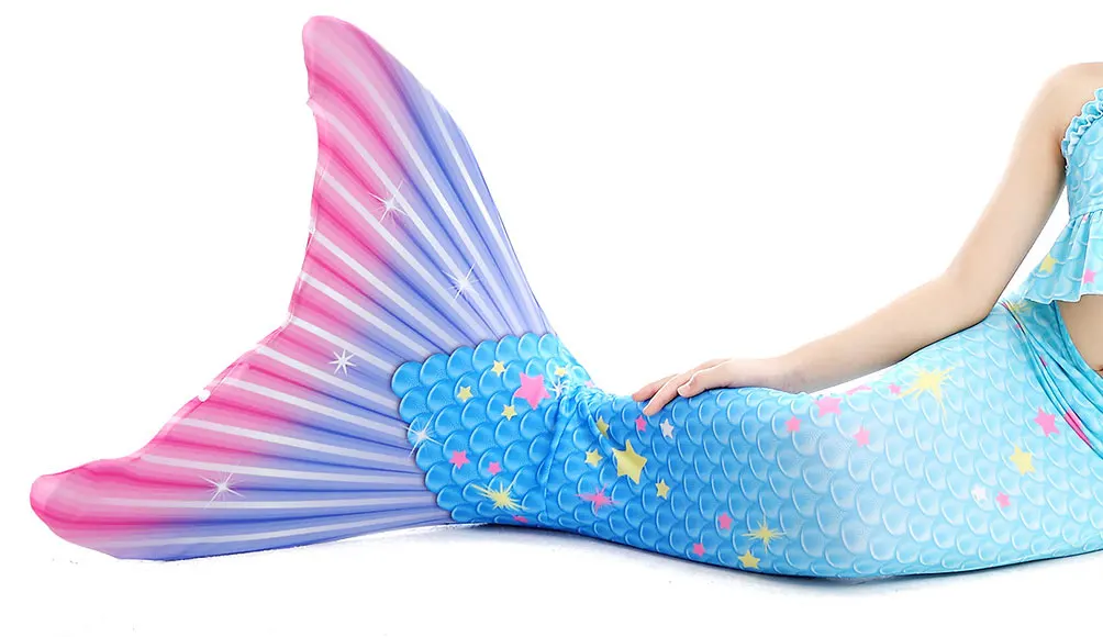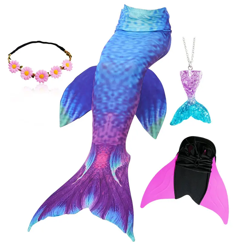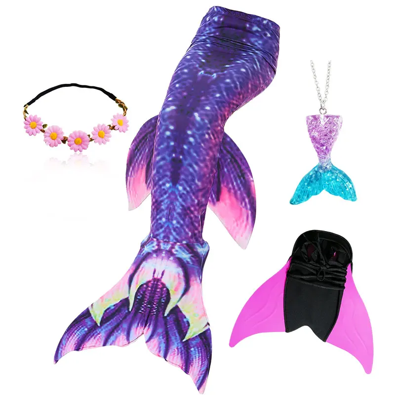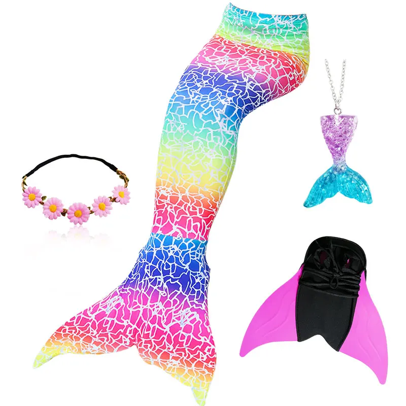 4 шт. в комплекте: 1 * хвост русалки + 1 * гирлянда + 1 * ожерелье + 1 * Жесткий монофин для плавания