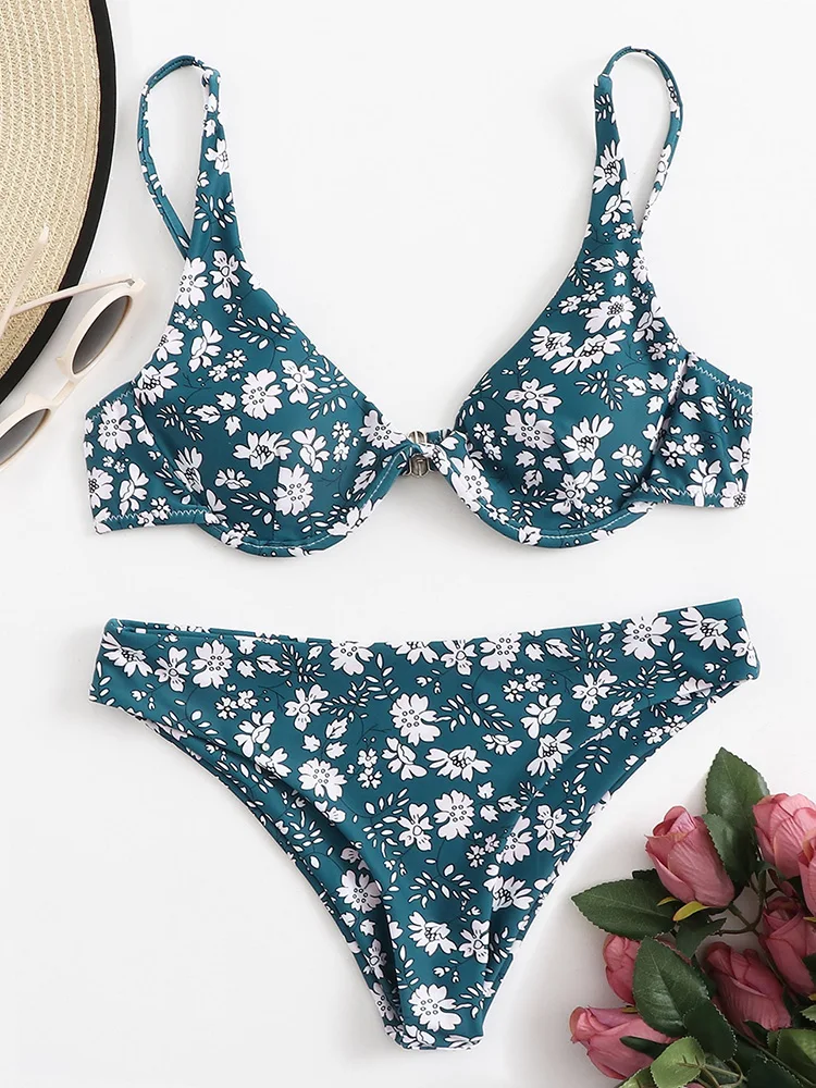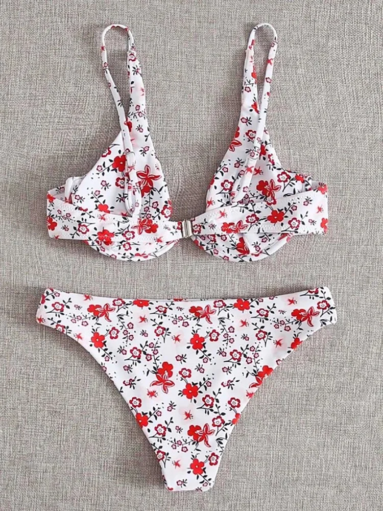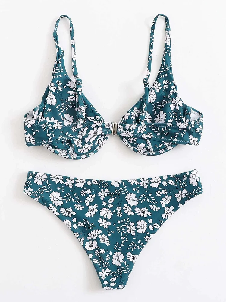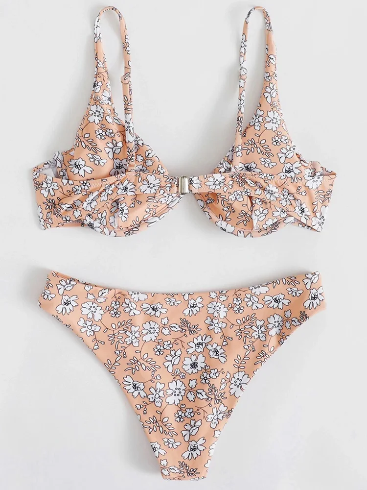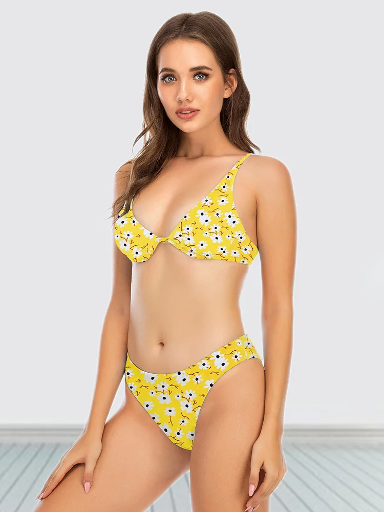 Стильный женский милый купальник-бикини из двух частей с цветочным принтом, новый модный летний купальный костюм с низкой талией, пляжная одежда