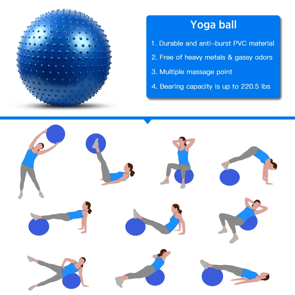Этот мяч для йоги специально разработан с несколькими частицами для массажа мышц и снятия напряжения для взрослых и развития сенсорных способностей для детей. Эффективно помогает вам войти в правильную позу йоги и укрепить мышцы. Идеально подходит для йоги, пилатеса, абдоминальных упражнений, гимнастики для беременных, прессов груди, сидений, основных тренировок.
