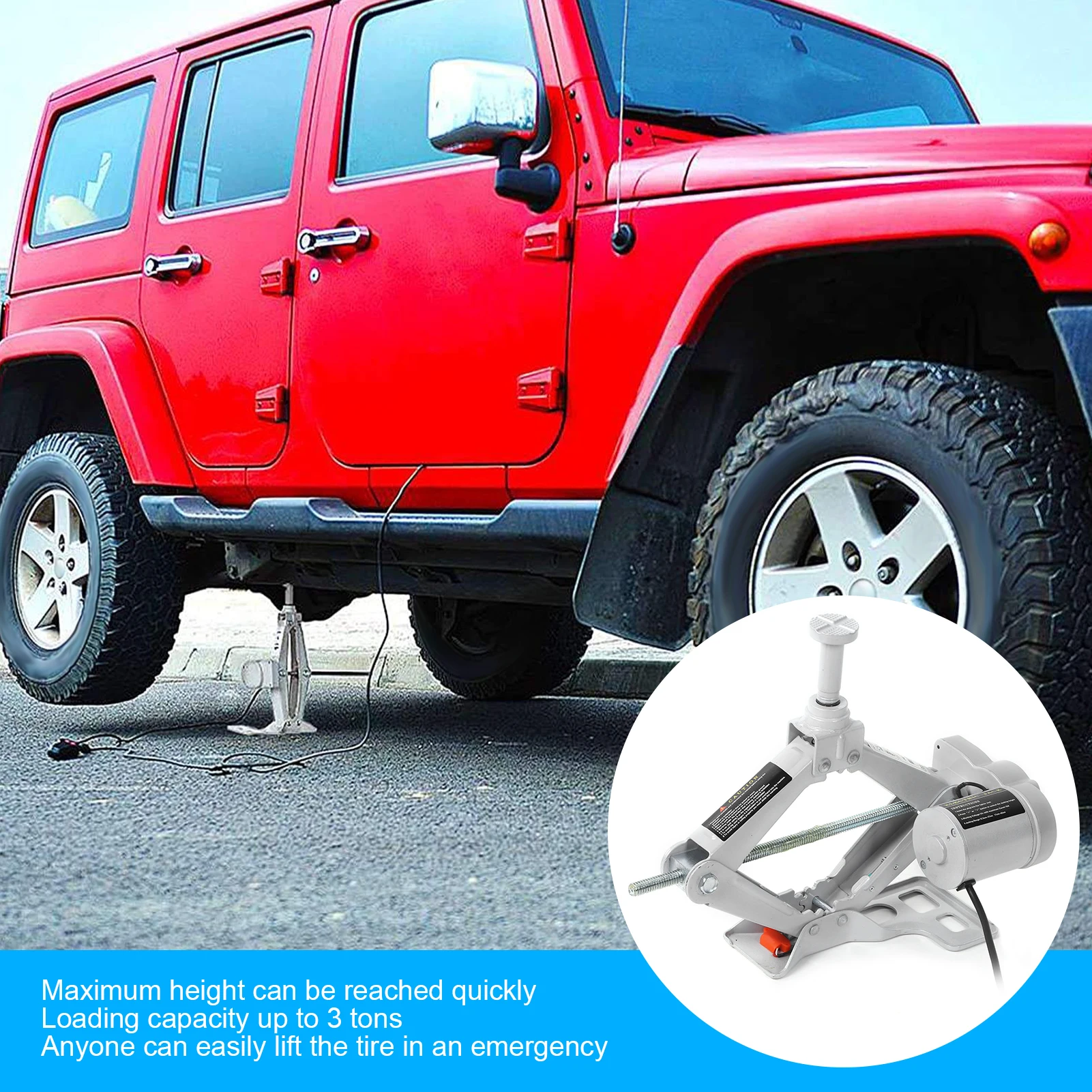 1. Максимальная высота может достигать быстро, с грузоподъемностью до 3 тонн. Любой человек может легко поднять шину в чрезвычайной ситуации. Сверхпрочная стальная конструкция, большое основание и седло делают его сильным и стабильным, компактный треугольник предназначен для улучшения стабильности, а твердый винт может предотвратить его разрывание или скручивание.
