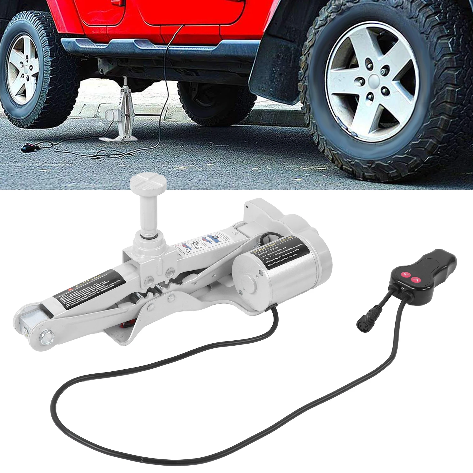 3. С контроллером, он очень подходит для замены автомобильных шин. Просто подключите прикуриватель или автомобильный аккумулятор, и вы можете легко нажать кнопку, чтобы поднять автомобиль.