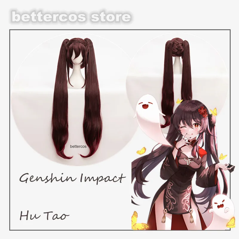 Женский парик Genshin Impact HuTao, коричневый парик для косплея, 110 см, термостойкие синтетические парики на Хэллоуин + парик