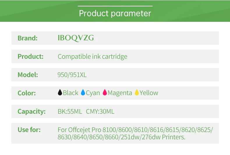 IBOQVZG совместимый для HP 950XL 951XL 950 951 чернильный картридж для HP Officejet Pro 8100 8600 8610 8615 8620 8625 251dw 276dw для HP 950