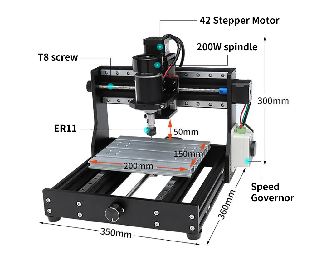 Шпиндель: 200 Вт 110-220 В