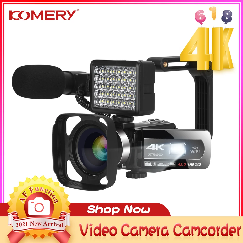 Komery 2021 Новое поступление 4K Цифровая видеокамера Автофокус 48MP веб-камера для Youtube WiFi сенсорный экран с пультом дистанционного управления