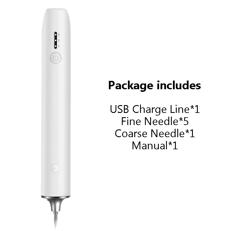 Продукт включает:Ручка для удаления * 1, Ручная * 1, грубая игла * 1, тонкая игла * 5, USB * 1, коробка * 1