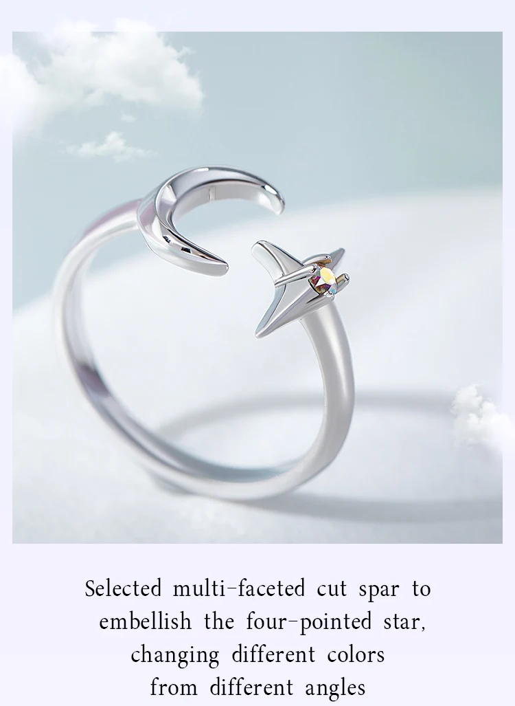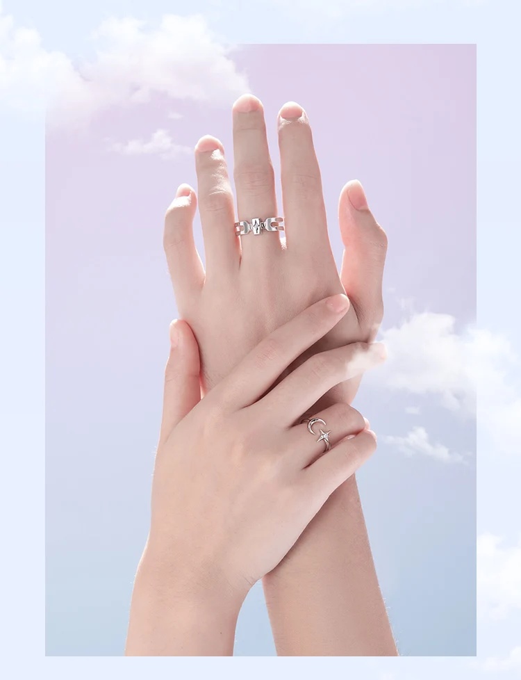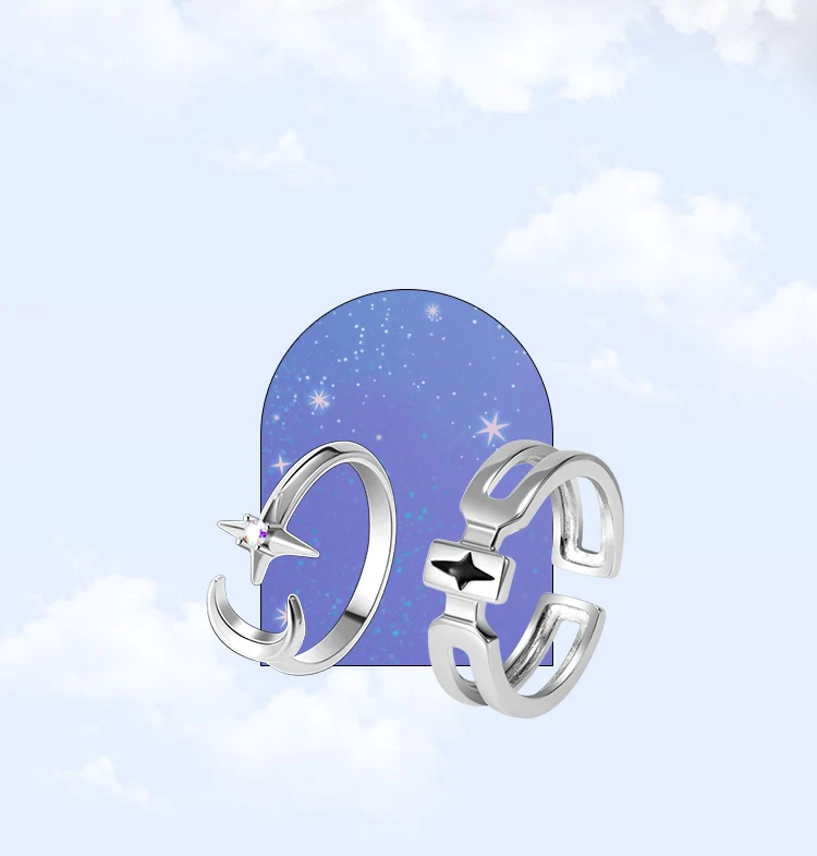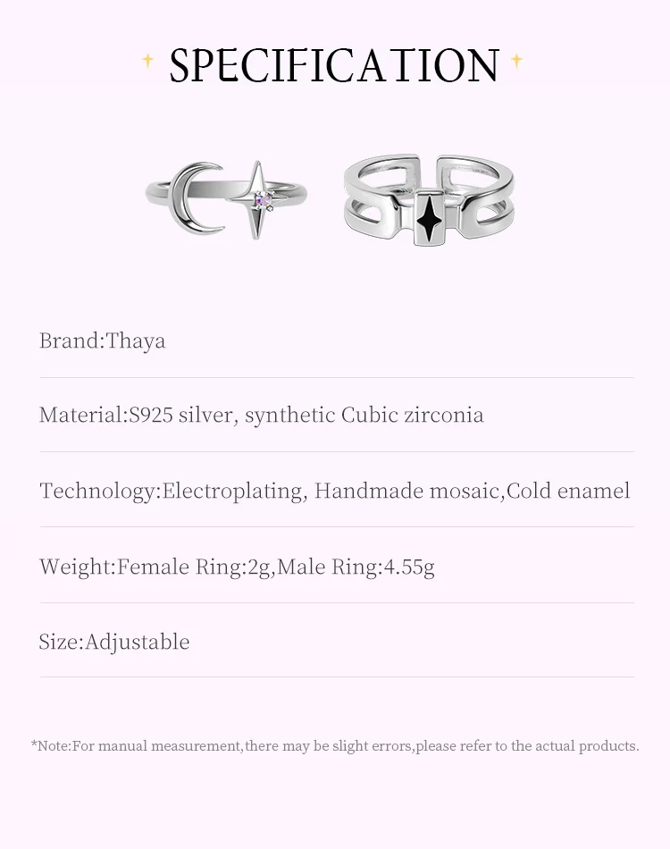 1-женский Кольцо украшено звезды и луна, мужское кольцо принимает полое кольцо, и звезды изображены с черным холодной технологии эмали