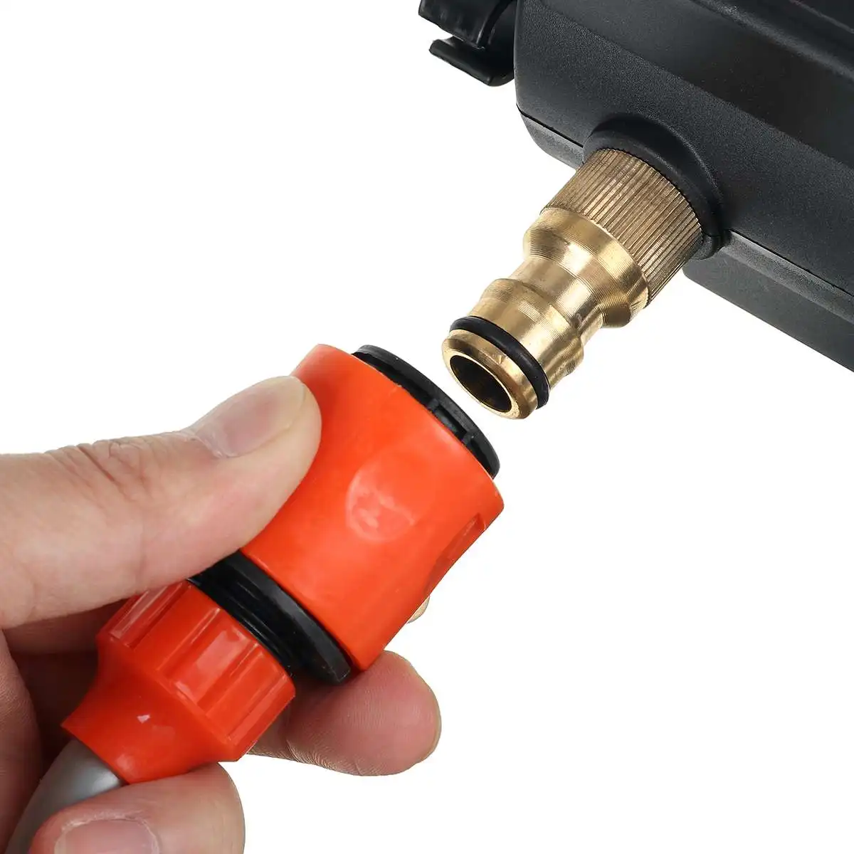 -Когда вы путешествуете на открытом воздухе, просто положите водопровод в rivulet, ведро или любой источник воды, чтобы начать мытье вашего автомобиля.