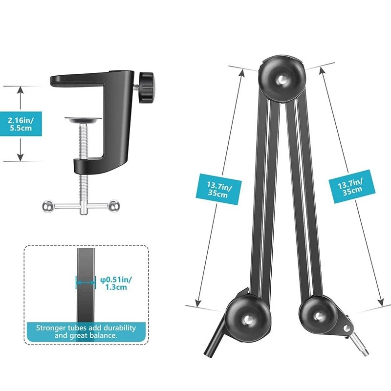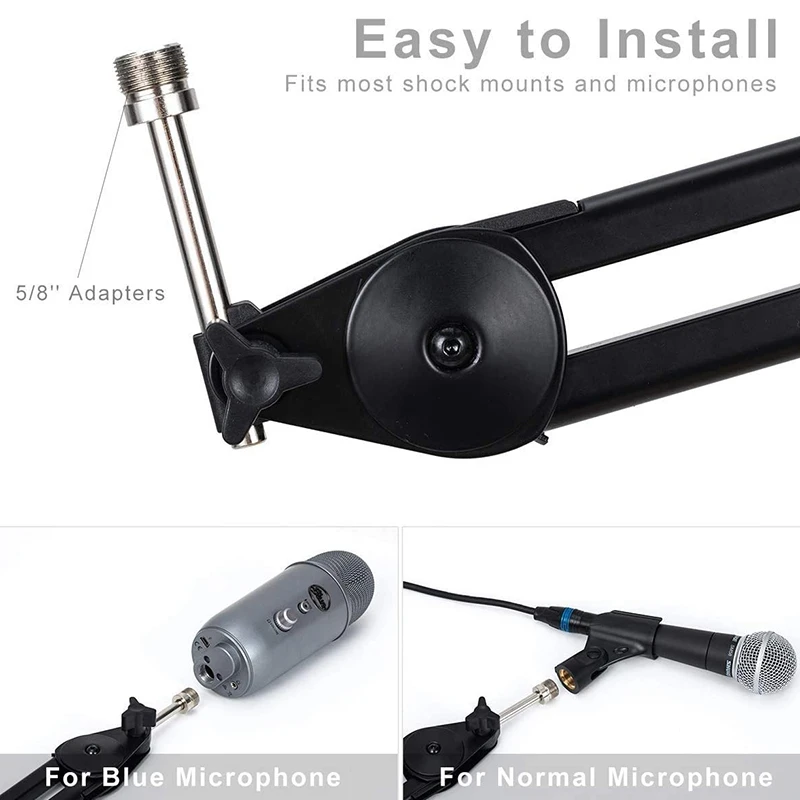 Совместимость с Университетом: разъем 5/8 дюймов совместим со многими микрофонами, такими как Blue Snowball, AT2020, AT2020USB +, AT2035, ATR2500-USB, ATR2100-USB и т. д. Примечание: Этот микрофон является короткой версией, Размер 14 дюймов.