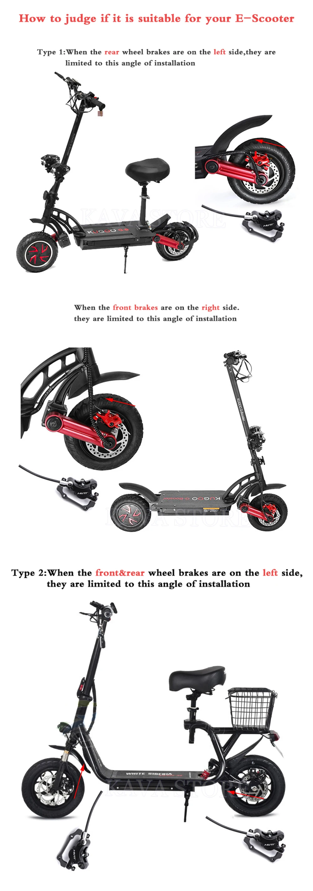В основном совместим с KUGOO G-Booster. (Подходит для большинства передних и задних тормозов с левой стороны и передних тормозов с правой стороны. Для установки к соединительному рычагу необходимо добавить проставки. Не подходит для установки правого заднего тормоза колеса.)
