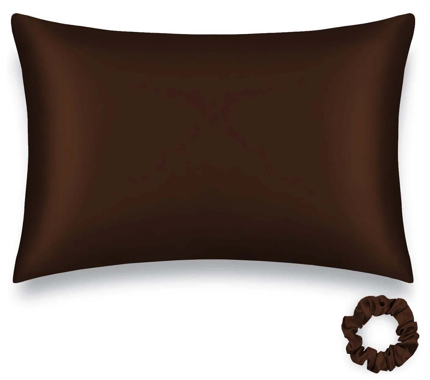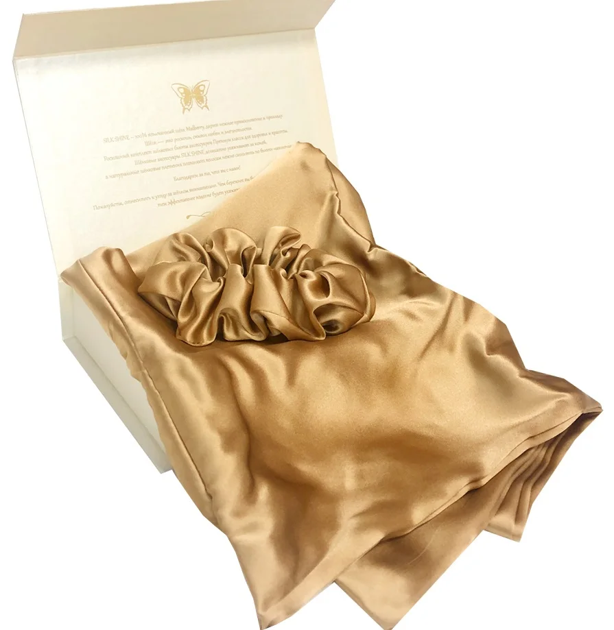 Шелковая наволочка с клапаном с эластичной шелковой лентой для волос в подарок.