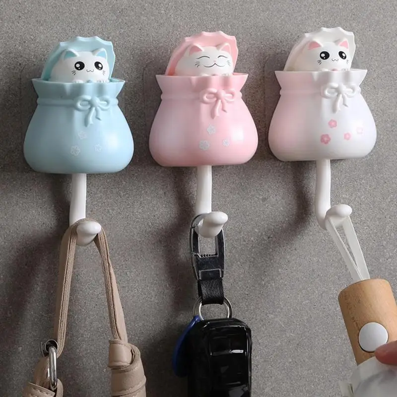 Интересный особый дизайн-когда крючок на чем-то висит, голова милого котенка выскакивает из полиэтиленового пакета, подходит для использования в детской комнате, чтобы держать комнату в порядке.