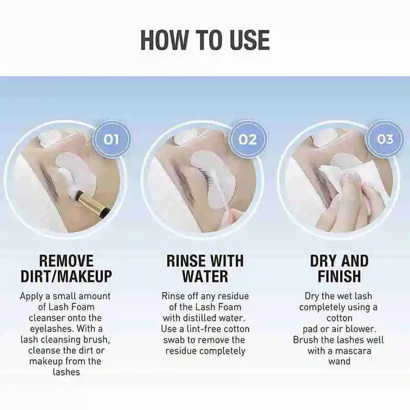 Во время процесса очистки используйте нановатный тампон для протирания по направлению роста ресниц