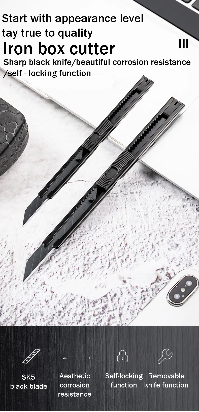 9 мм Железный чехол, ящик для ножей, нож для творчества, резак для бумаги, металлическое лезвие, самоблокирующийся дизайн, угол с резаком для трещин