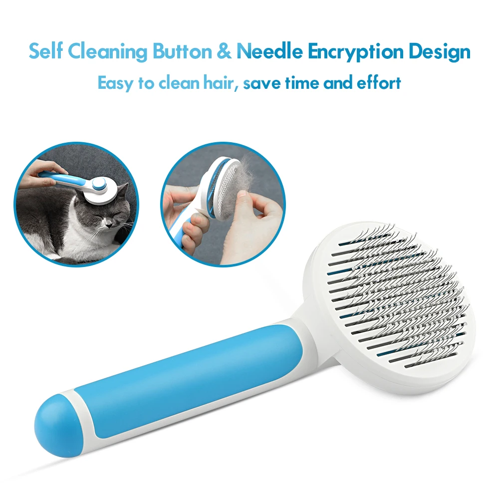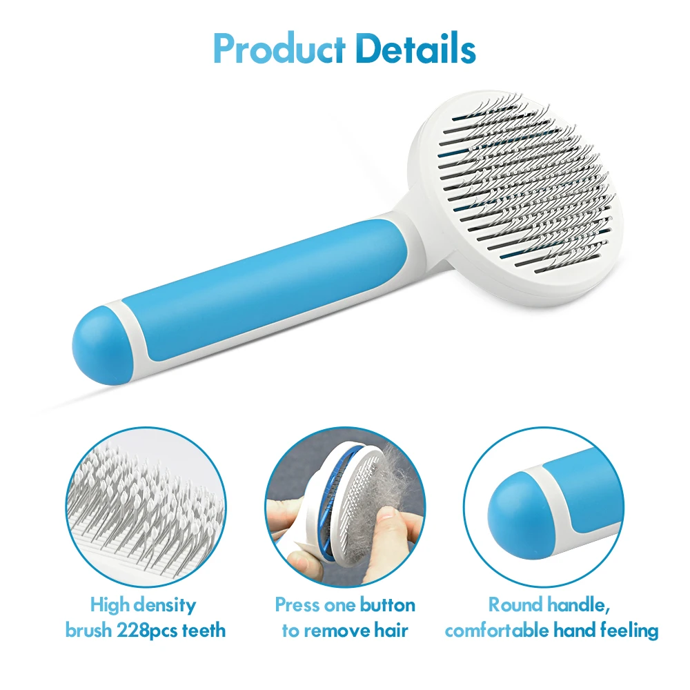 Безопасная и удобная щетина расческа для ухода ха шерстью животных слегка изогнута, предназначена для глубокой очистки под мехом питомца. Массаж частиц не поцарапает кожу питомца, придавая вашему питомцу удовольствие и приятный уход.