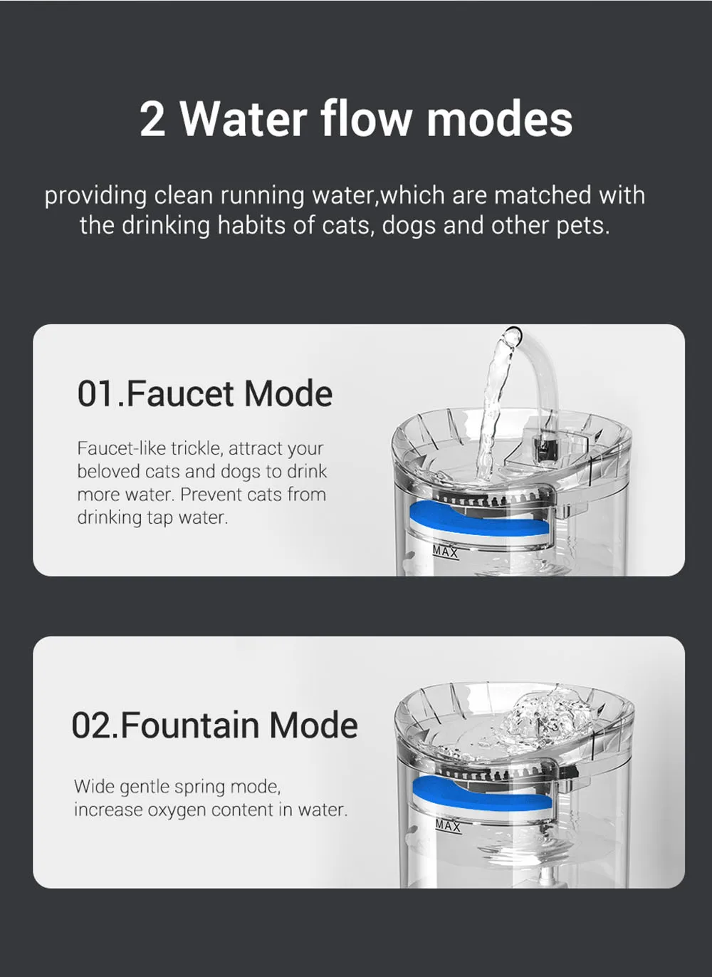 2 режима подачи воды, обеспечивая чистую проточную воду, сделайте ваших питомцев счастливее и здоровее.
