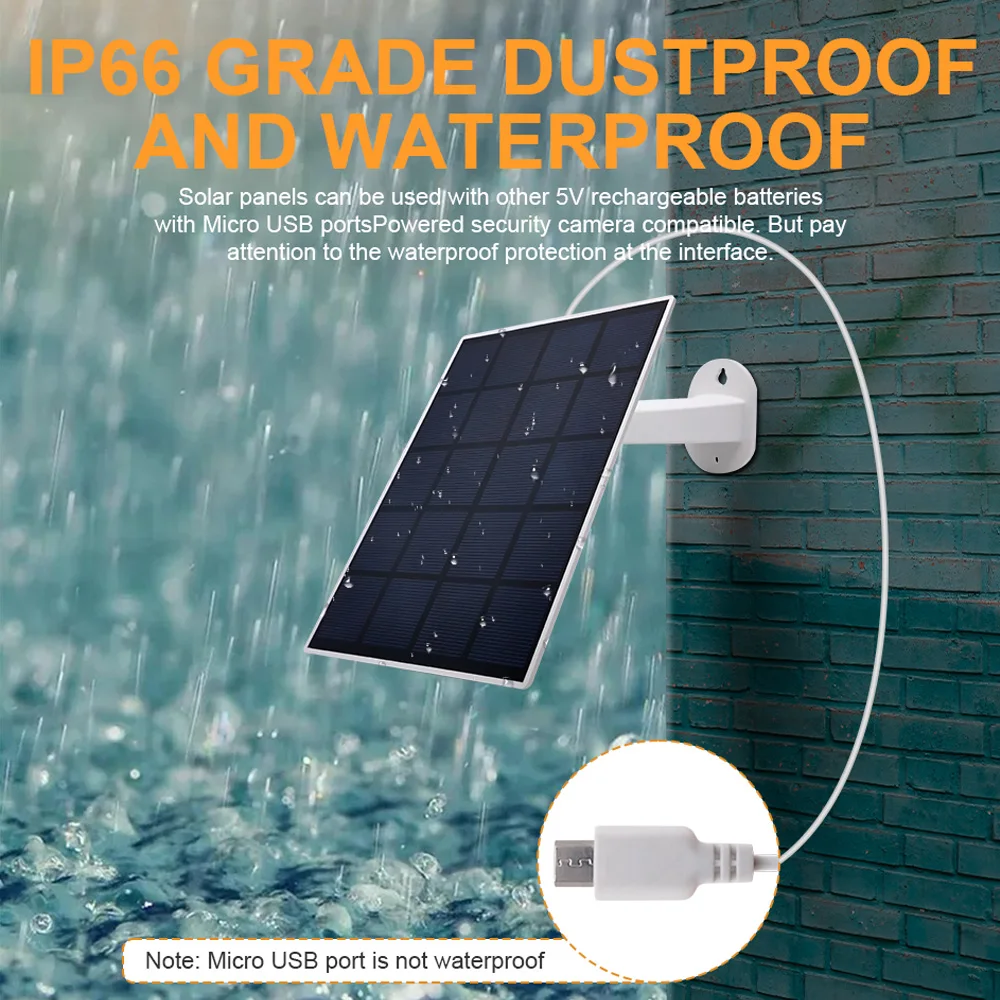 ☀Широко Совместимость --- эта солнечная панель специально разработана для наружной камеры безопасности с индивидуальным силиконовым покрытием для зарядки порта, сохраняя вашу домашнюю камеру безопасности заряженной без беспокойства. (Камера в комплект не входит)