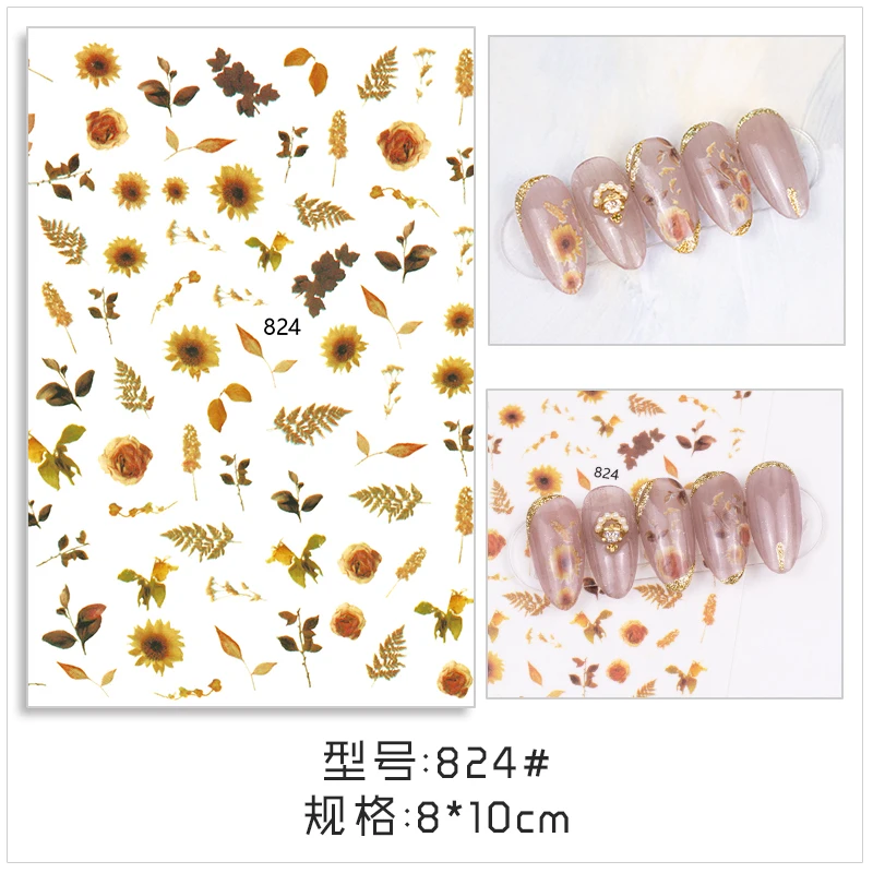 1 шт. Ретро Винтажные акценты ультратонкие переводные наклейки для ногтей цветы листья маргаритки летние украшения для ногтей Аксессуары для маникюра сделай сам