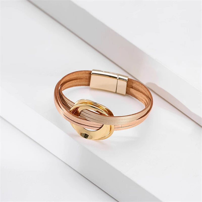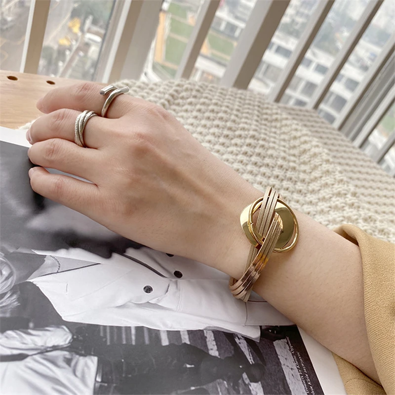 Женские Геометрические браслеты ALLYES, браслет из розового золота с металлическим шармом, простой кожаный браслет, ювелирное изделие, подарок