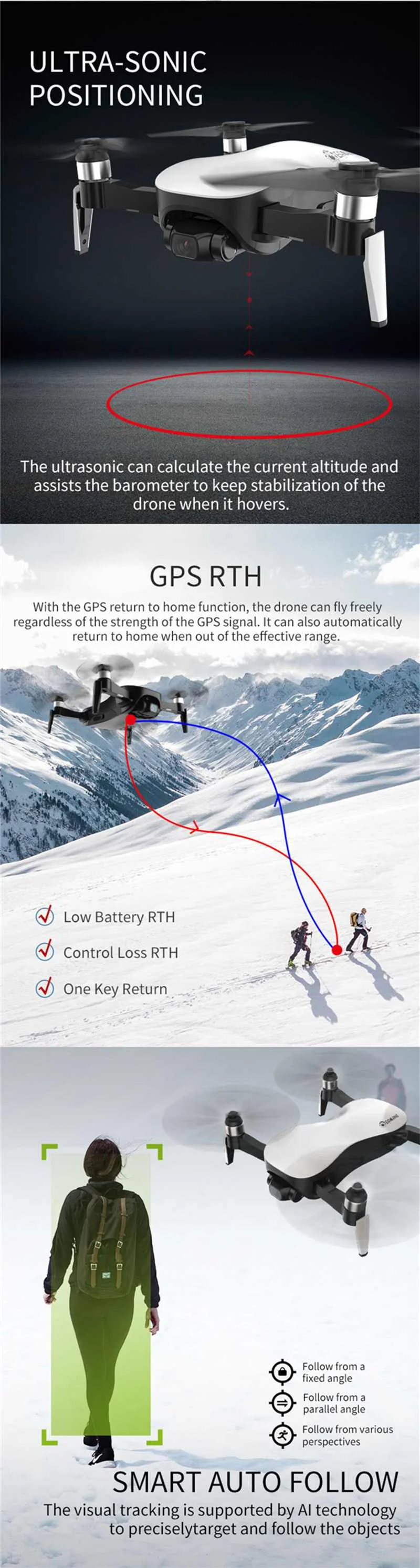 Функция:Вверх/вниз, вперед/назад, поворот влево/вправо, боковой полет, Безголовый режим, gps-позиционирование, следуй за мной, режим орбиты, полет по пути, оптическое распространение, ультразвуковой режим удержания высоты, wiFi FPV, камера/видео, функция гравитации, сопряжение и обмен данными