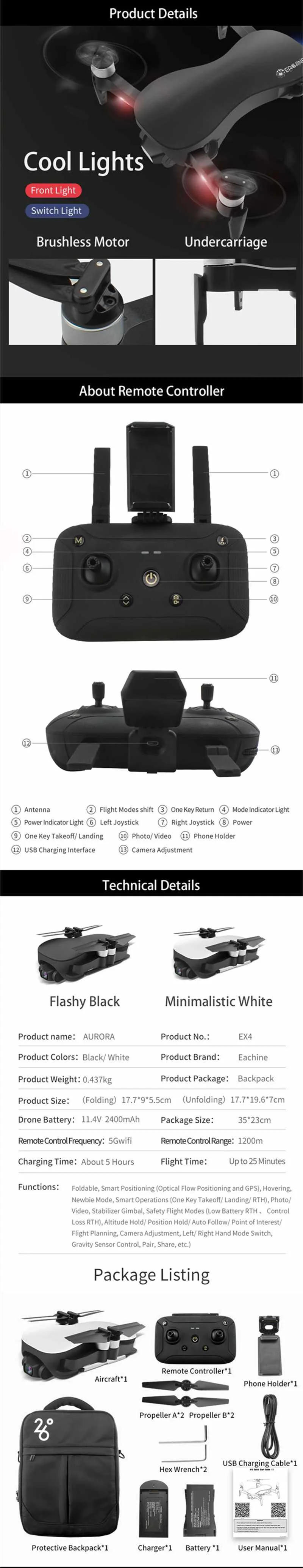 Eachine EX4 5G WI-FI 1,2 км с видом от первого лица GPS с 4K HD Камера 3-осевой стабильный Gimbal 25 минут времени полета RC Дрон Квадрокоптер RTF