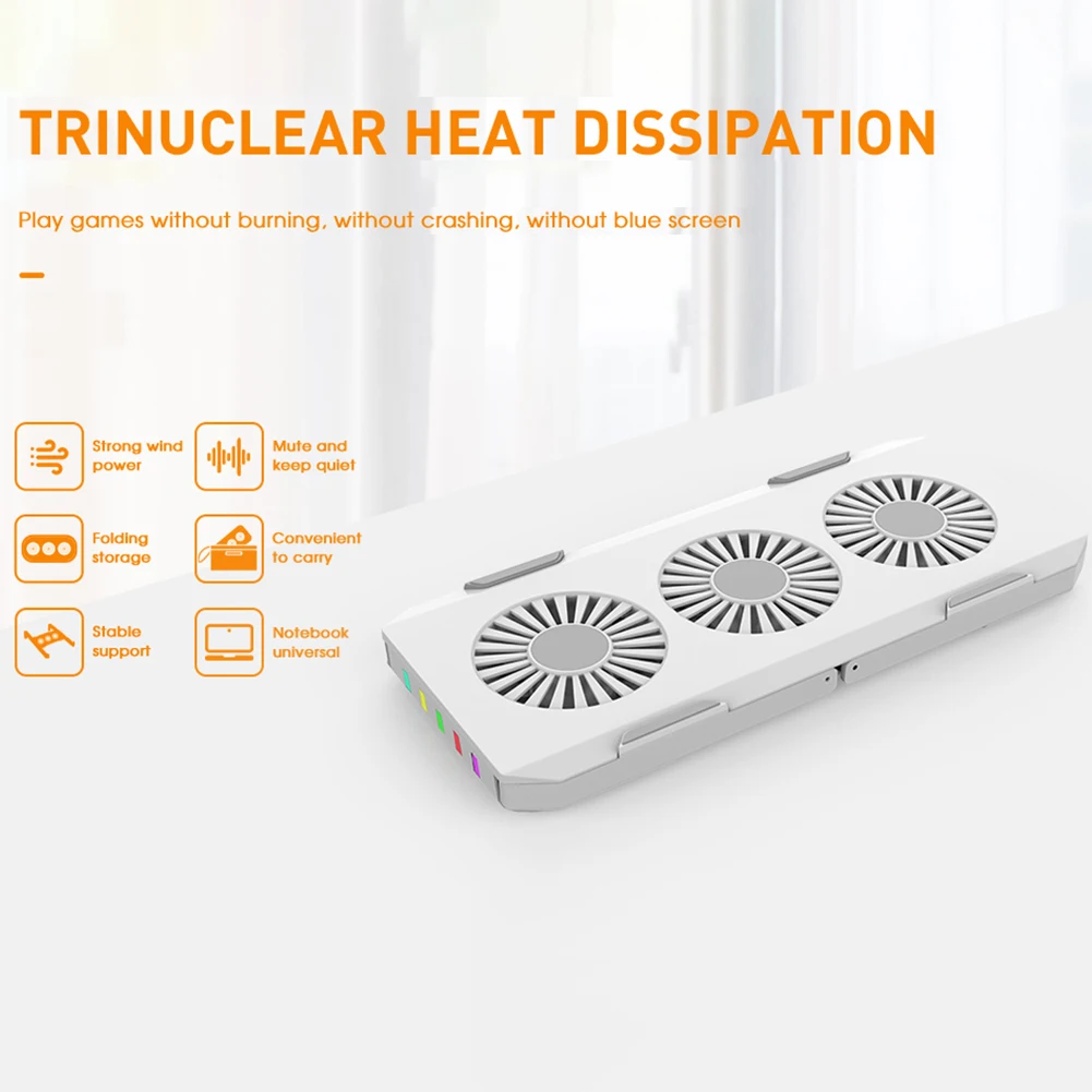X1 игровой кулер для ноутбука 3 вентилятора RGB светодиодный светильник 4500 об/мин Мощный воздушный поток портативный мини складной охлаждающий коврик для ноутбука Подставка